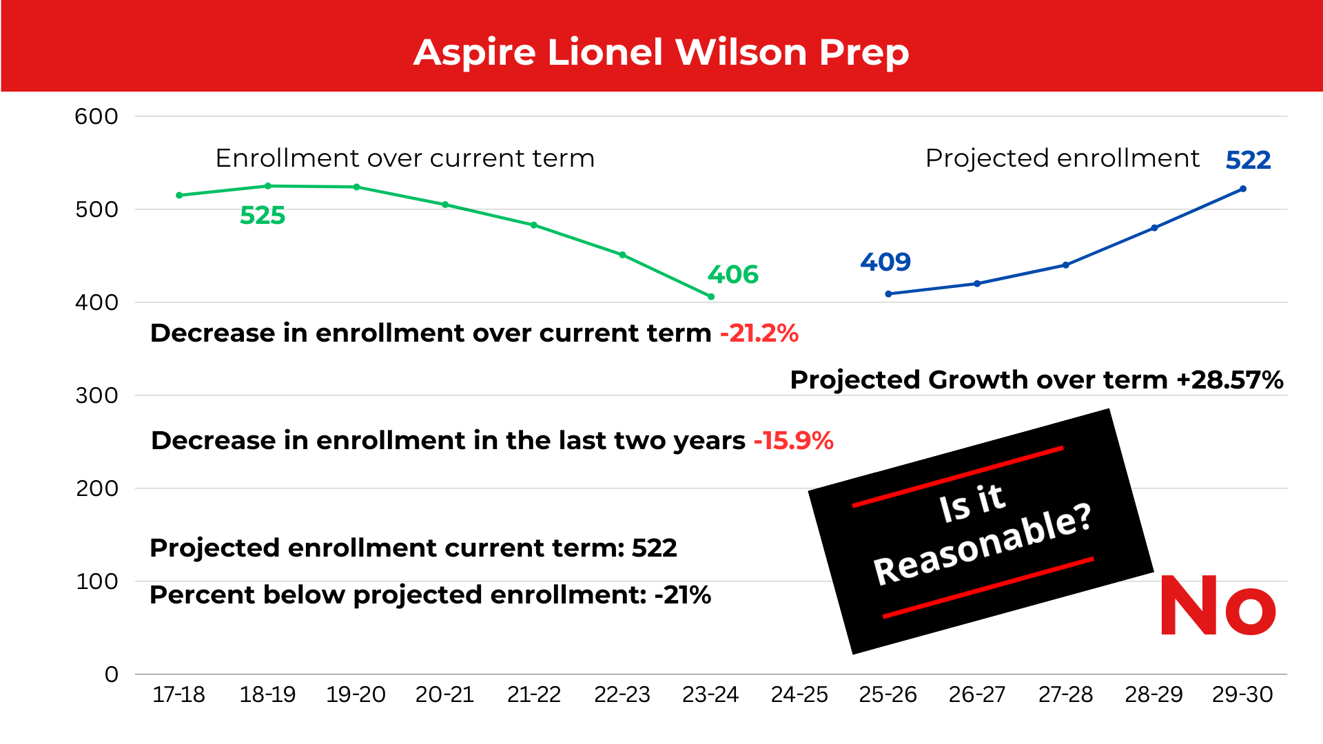 Given that, it is inherently unreasonable for Aspire LWP to be projecting a nearly 30% growth over the next charter term. It is hard to turn around steep enrollment decline, but it is frankly impossible in a time when enrollment is expected to continue to decline as is projected for California. If OUSD projected a 30% growth and based its multiyear projections on that, the county trustee would reject it as inherently unreasonable. OUSD should do the same here. The fiscal projections are not reasonable, making the programmatic offerings not realistic.