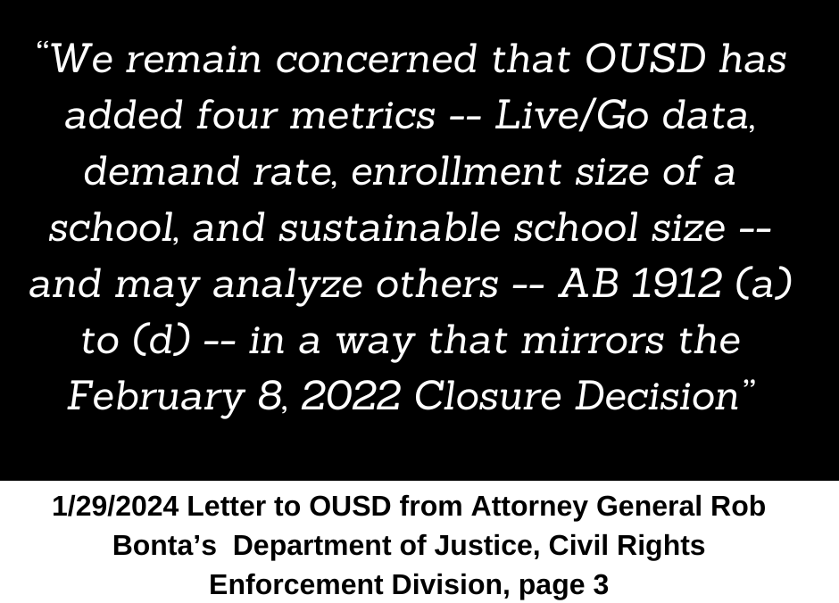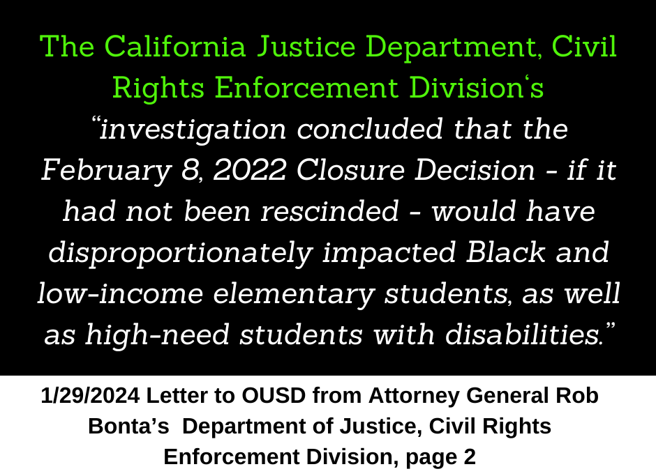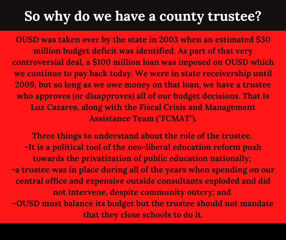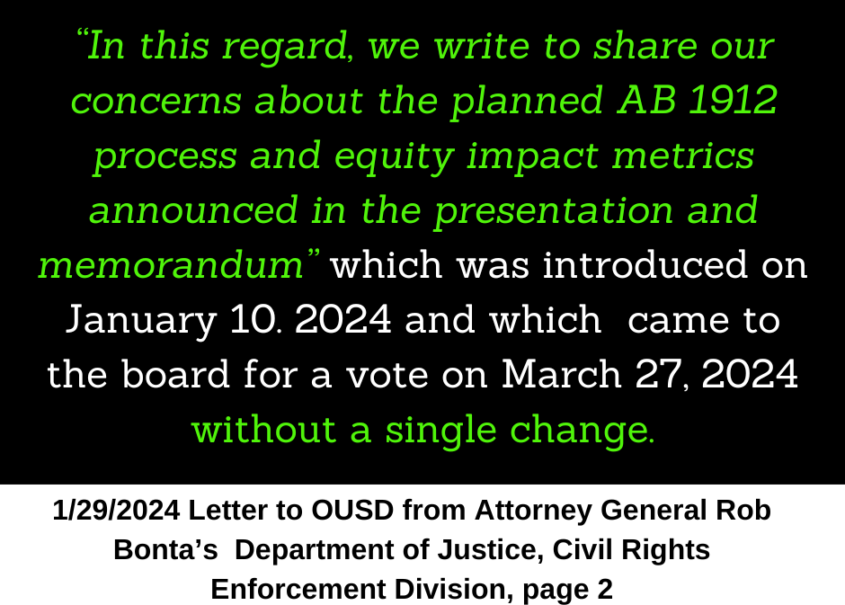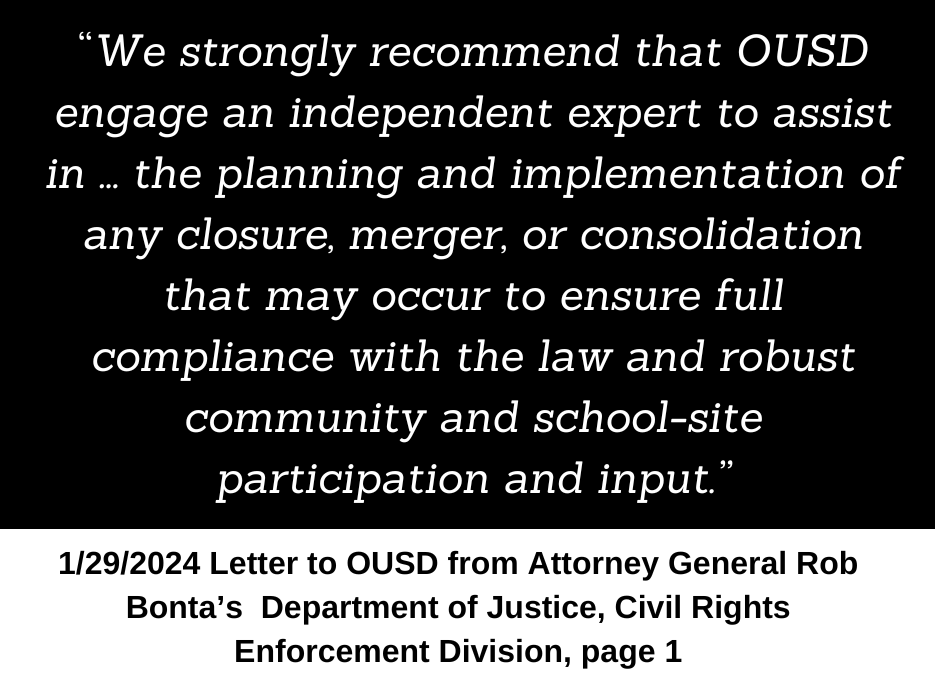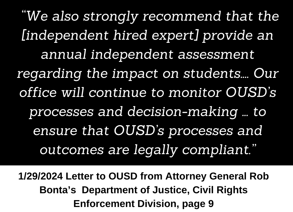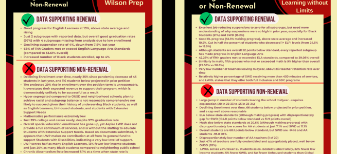 It is time for OUSD to step into their role as a responsible authorizer, and if they determine that means holding Aspire LWP accountable for failing to educate all students, then the fact that the charter office, who is not the decision maker, has backed them into a corner by recommending approval without findings to deny, should not be the reason why they fail to act.