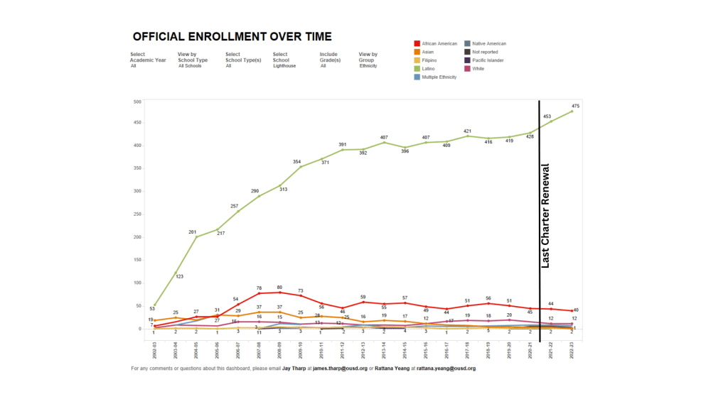 Since OUSD regained local governing control in 2009, the Charter School Renewal process has been largely opaque and somewhat perfunctory, with most charter schools being recommended for renewal by our prior Charter Office staff, and the board nearly always agreeing with them. This will be the first time that any of our current board members have faced a renewal petition, and among the first to be decided since the passage of AB 1505, which revised charter law, providing additional tools for holding charter schools accountable for serving the same student populations served by public school districts and evaluating the impact of charter schools on their schools.
